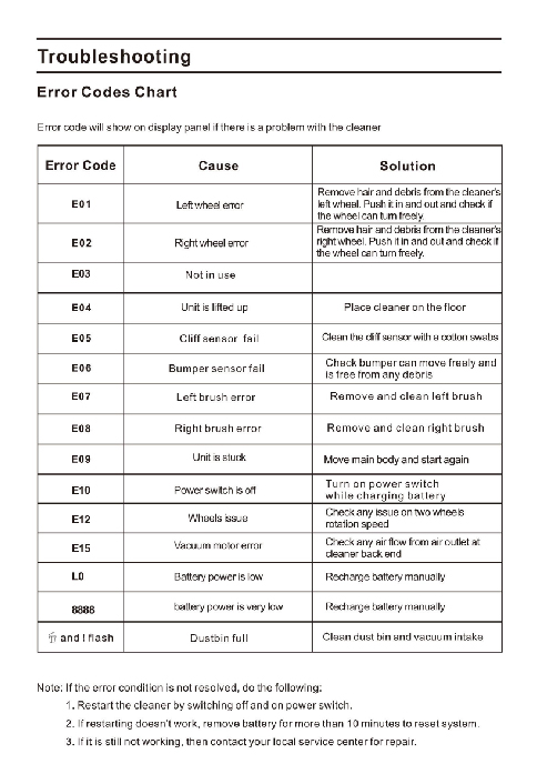 Turn on power switch on the unit side before recharge battery. Otherwise, E10 error code will show up.