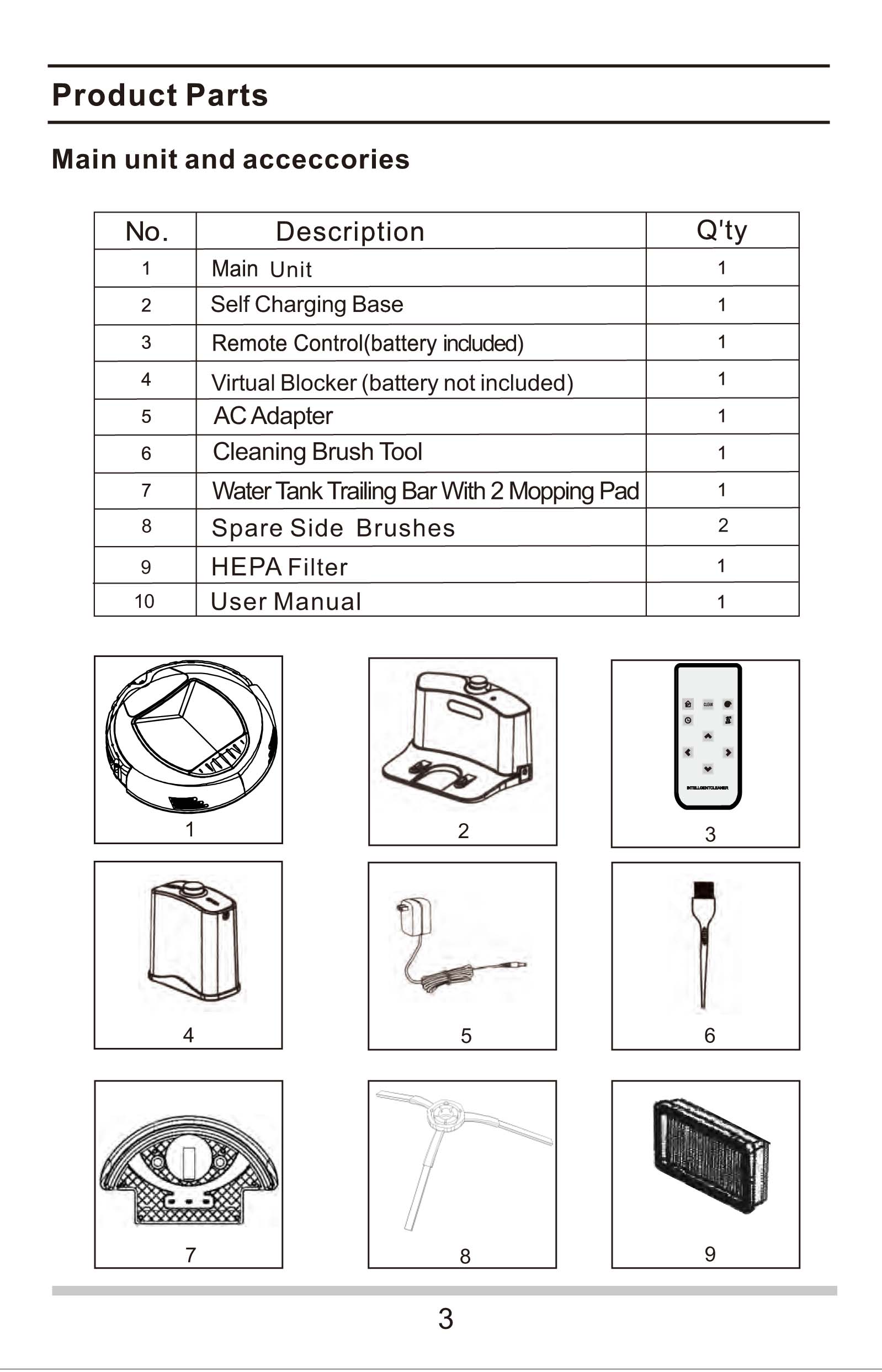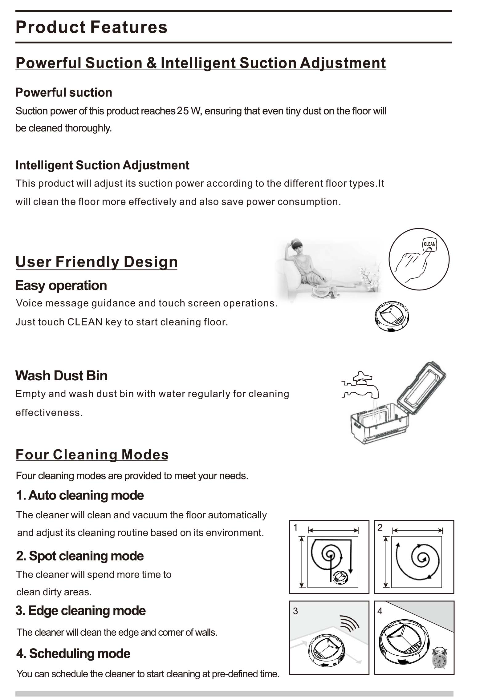There are two ways to recharge battery, manual charging and Auto charging. Please refer to page 7 of user manual for details.